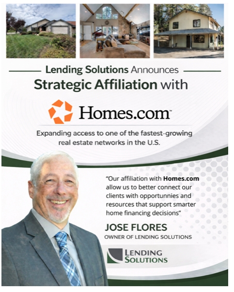 Lending Solutions, a Folsom, California mortgage firm led by founder and owner Jose Flores, has announced a strategic affiliation with Homes.com, the fastest-growing real estate network in the United States, powered by CoStar data. This partnership enables clients to seamlessly search for verified, up-to-date property listings and secure personalized mortgage financing through one trusted team, while prioritizing transparency, direct agent access, and client-first financial guidance.